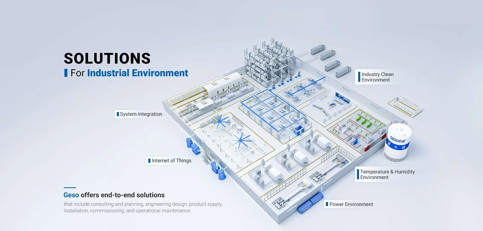لتلبية اللوائح الصناعية الأوروبية ومتطلبات التصنيع المتقدم، نشرت GESO بنية تحتية بيئية متكاملة كاملة تغطي ثلاثة مجالات:
